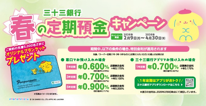 三十三銀行「合併記念キャンペーン」実施のお知らせ