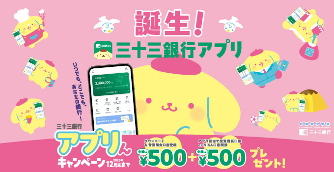 三十三銀行「合併記念キャンペーン」実施のお知らせ