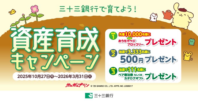 三十三銀行で育てよう! 資産育成キャンペーンのお知らせ